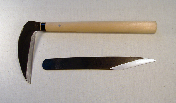 また、業務用園芸刃物の鎌、鉈(ナタ)、切出し小刀なども注文製作しております。